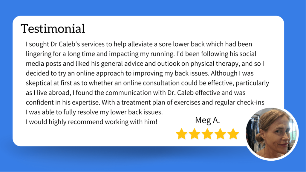 Hi, I’m Dr. Caleb Burgess, DPT. I specialize in helping athletes and active people of all ages reach peak performance in their sport or activity of choice while helping to bulletproof their bodies to stay injury free in the process.
